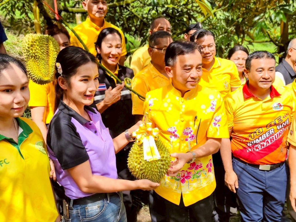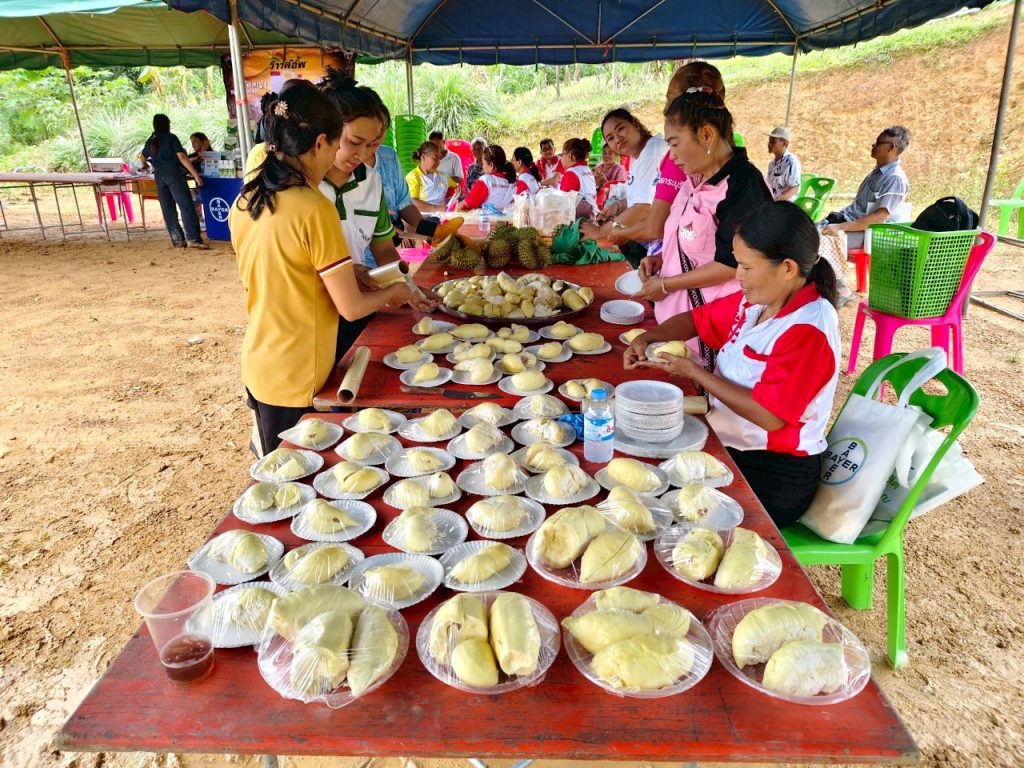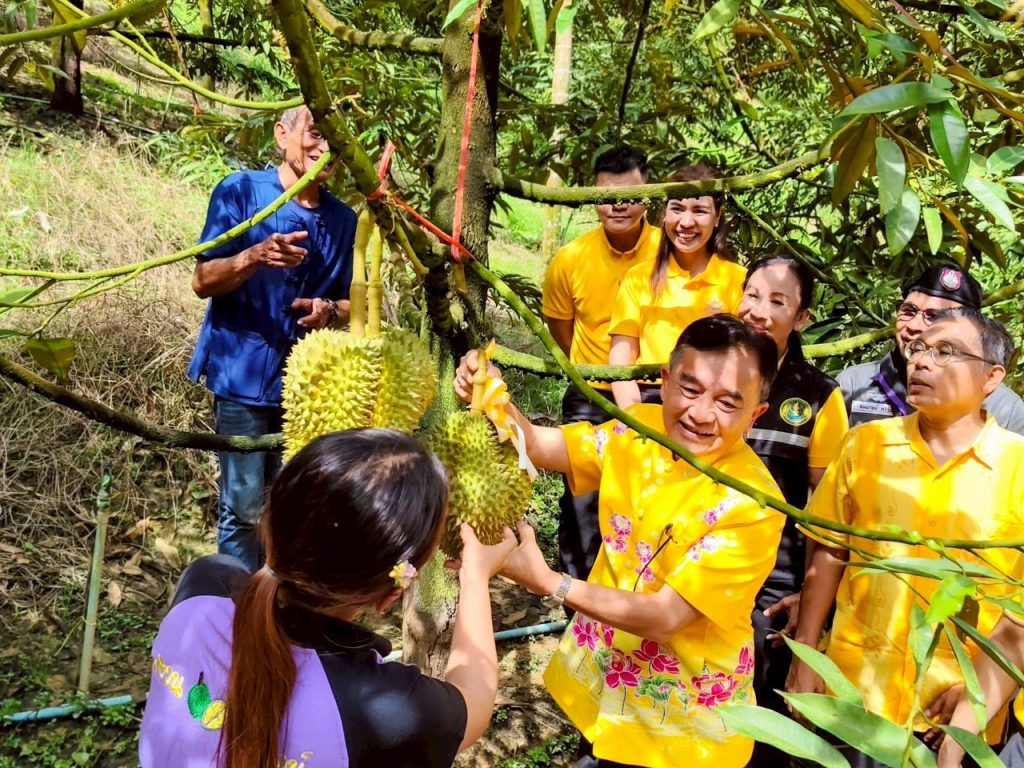 ในการนี้ ผู้ว่าราชการจังหวัดระนอง ได้ให้เกียรติตัดทุเรียนมีดแรกของจังหวัดระนอง โดยนำหัวหน้าส่วนราชการและสื่อมวลชนเยี่ยมชมสวนไม้ผลชิมทุเรียน อีกทั้งยังได้มอบกล่องบรรจุภัณฑ์ให้กับกลุ่มเกษตรกร เพื่อให้นำไปใช้ในการเพิ่มมูลค่าสินค้าต่อไป