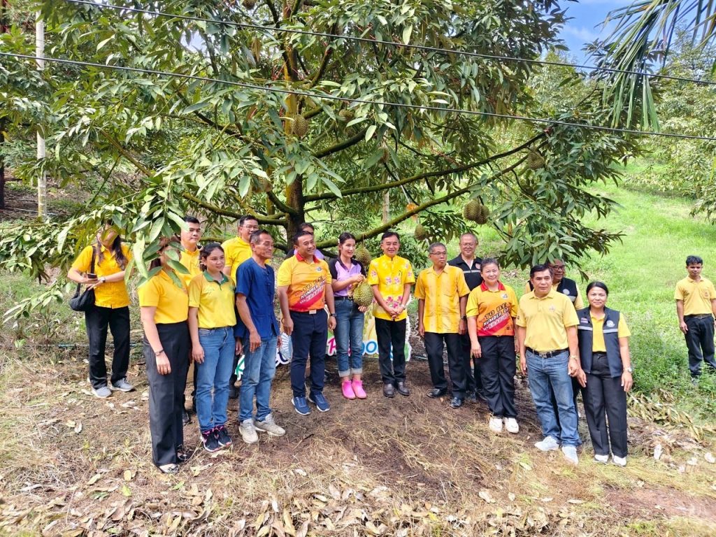 วันศุกร์ที่ 20 มิถุนายน 2568 นางเพ็ญประภา จันทร์คง เกษตรจังหวัดระนอง มอบหมายให้นางสาวขวัญตา หล่อเพชร หัวหน้ากลุ่มยุทธศาสตร์และสารสนเทศ พร้อมด้วยนางเนตรพรรณี สิงห์ทอง หัวหน้ากลุ่มส่งเสริมและพัฒนาการผลิต นางศิริทิพย์ แก้วกระจ่าง เกษตรอำเภอกระบุรี เจ้าหน้าที่สำนักงานเกษตรจังหวัด ระนอง และสำนักงานเกษตรอำเภอกระบุรี จัดงานประชาสัมพันธ์ส่งเสริมการสร้างอัตลักษณ์ผลไม้จังหวัดระนองปี 2568 กิจกรรมวันเริ่มฤดูกาลเก็บเกี่ยวทุเรียน ระนอง (Ranong durian harvest season) ณ ที่ทำการแปลงใหญ่ทุเรียน หมู่ที่ 9 ตำบล จ.ป.ร. อำเภอกระบุรี จังหวัดระนอง และแปลงทุเรียนางสาวนัยรัตน์ ทบศรี หมู่ 9 ตำบล จ.ป.ร. อำเภอกระบุรี จังหวัดระนอง